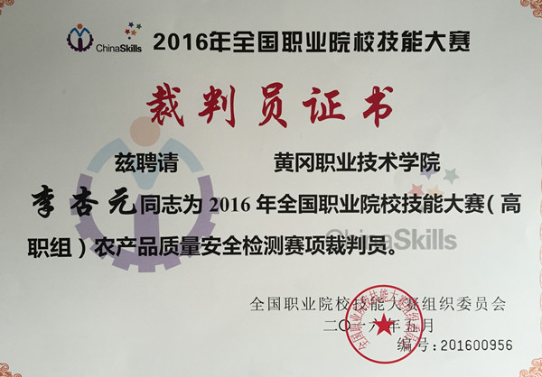 5月19日至23日,2016年全国职业院校技能大赛(高职组)农产品质量安全检测赛项在杭州举行。来自全国68所高职院校159名选手参加了比赛。Beat365生物与制药工程学院李杏元副教授应大赛组委会邀请担任本次大赛农药残留检测项目主裁判,并圆满完成执裁任务。