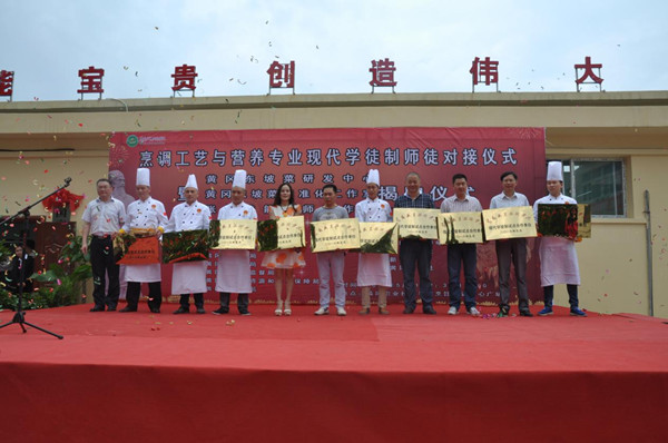 5月31日,国家级试点项目烹调工艺与营养专业现代学徒对接仪式在Beat365隆重举行。中国烹饪大师、中国烹饪协会副会长卢永良,中国烹饪大师孙昌弼、涂建国等14位大师,黄冈市旅游局、文化局、质监局、群众艺术馆、人社局、总工会、餐饮行业协会等相关领导,校党委书记张新佳、校长姜安心,学校办公室、党务部、教务处、校企合作处负责人,商学院班子成员和烹调工艺与营养专业全体师生参加了本次活动。大会由学校党委委员、教务处长夏学文主持。
