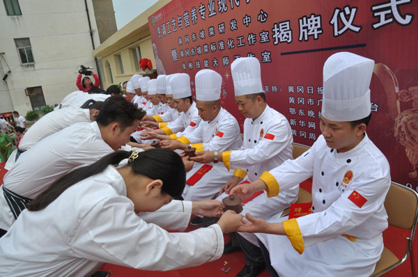 涂建国、曾德福为中国黄冈东坡菜标准化工作室揭牌