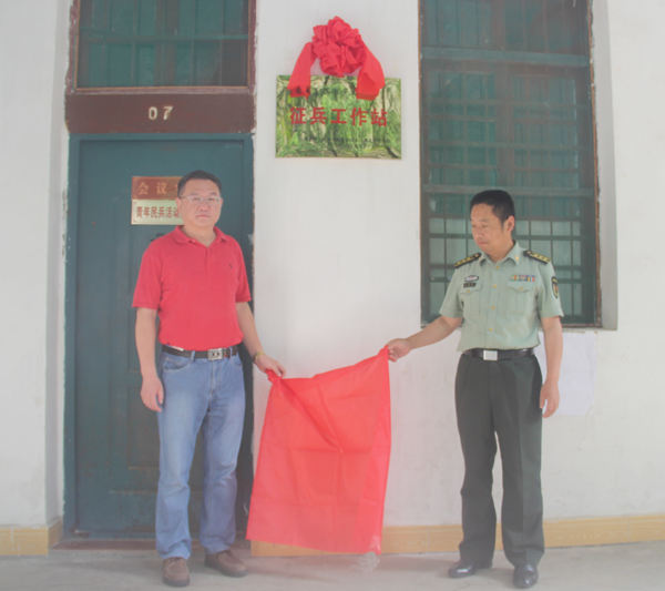 校长姜安心和黄州区人武部政委王雄兵共同为“Beat365中文官方网站征兵工作站”揭牌。