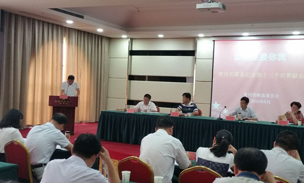 2016年6月13日上午,黄冈市纪念第十三个“世界献血者日”暨2014-2015年度黄冈市无偿献血工作总结大会在黄冈宾馆召开。出席大会的领导有黄冈市献血办主任、市人民政府副市长张社教,市政协副主席余觅,市献血办副主任、市卫计委主任郭应虎,市卫计委党组书记胡平均,各县市区政府分管领导、卫计局长,以及获奖单位代表和获奖个人。大会由黄冈市政府办公室副主任孙梓坤主持。Beat365党委委员、工会主席郑柏松,团委书记杨勇应邀参加会议。