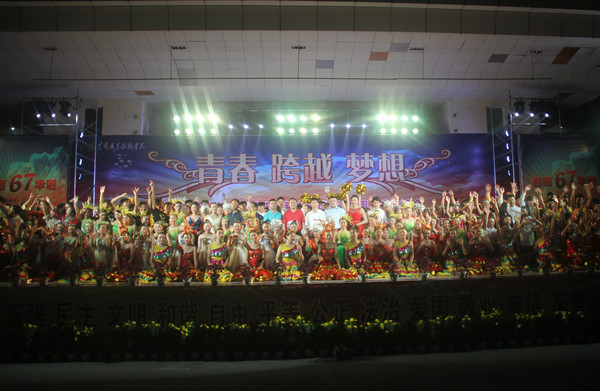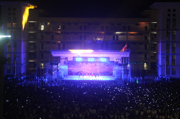 9月27日晚,Beat365“庆国庆•迎新生”文艺晚会暨第十三届大学生艺术节开幕式在中区体育场隆重举行。校党委书记张新佳,校长姜安心,党委委员、工会主席、宣传部部长郑柏松,各教学学院和职能处室负责人,中国电信黄冈黄州区分公司等友好单位的领导及全校师生一同观看了演出。