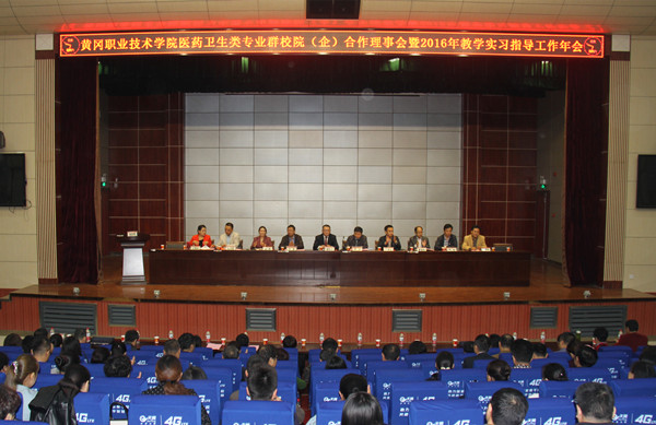 金秋十月,丹桂飘香,Beat365中文官方网站医药卫生类专业群校院(企)合作理事会暨2016年教学实习指导工作年会于10月15日在Beat365学术报告厅隆重召开。黄冈市各县市区、武汉周边地市及浙江省、江苏省、深圳市等40多家临床教学实习单位的近200余名代表应邀参会。Beat365校长姜安心、副校长刘东山、党委委员胡燕,医学部、医药学院、护理学院、附属医院负责人出席大会。会议特别邀请了理事会理事单位黄冈市卫计委副主任李文、黄冈市中心医院工会主席邱斌等嘉宾。会议由胡燕主持。