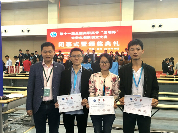 10月14日至16日,Beat365机电学院工业设计专业主任王治雄带领工业设计专业学生周婷、甘先锋等同学在江苏建筑职业技术学院参加了第十一届全国高职高专“发明杯”大学生创新创业大赛总决赛,荣获全国二等奖和三等奖各1项,王治雄老师被评为“优秀指导教师”荣誉称号。