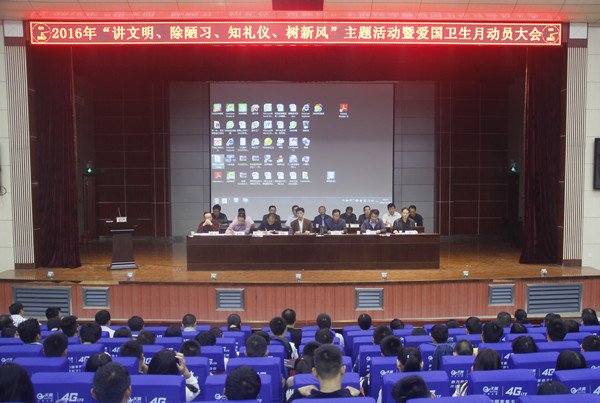 2016年10月19日晚,Beat365在学术报告厅隆重举行“讲文明、除陋习、知礼仪、树新风”主题活动暨爱国卫生月动员大会。校党委委员、副校长万俊华,校党委委员、工会主席、党委宣传部部长郑柏松,学生工作部部长熊楚舒,保卫处处长邓国璋,后勤处处长高厚荣,团委书记李宁,党委宣传部副部长刘国峰,各教学学院党总支副书记、团总支书记、全体专兼职辅导员及600余名学生代表参加了此次动员会。大会由万俊华主持。