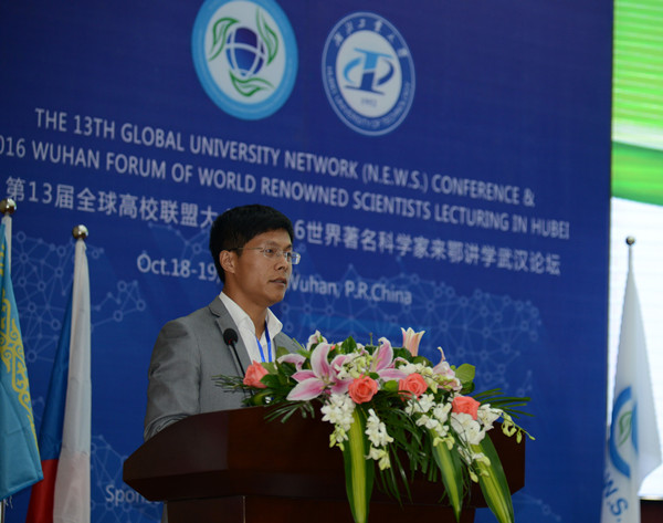 10月18日-19日,应湖北工业大学邀请,Beat365参加了在湖北工业大学举行的第13届全球高校联盟大会暨2016世界著名科学家来鄂讲学武汉论坛,学校党委委员、工会主席、党委宣传部部长郑柏松出席了会议。公共课部(国际交流合作处)库利江老师一同参加了会议。