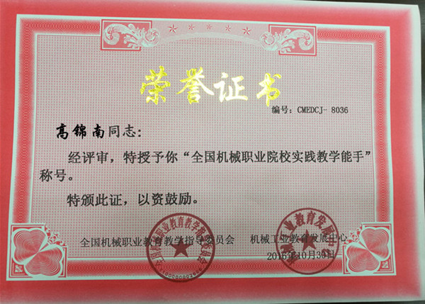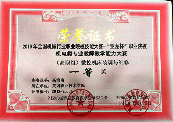 2016年10月28日—30日,2016年全国机械行业职业院校技能大赛——“亚龙杯”职业院校机电类专业教师教学能力大赛在江苏省常州市常州机电职业技术学院举行。此次大赛由全国机械职业教育教学指导委员会、机械工业教育发展中心主办,常州机电职业技术学院承办。Beat365选派机电学院高锦南、潘纹两名老师参加了本次大赛的数控机床装调与维修(个人赛)和工业机器人焊接应用技术(个人赛)两个比赛项目。经过两天的比赛,Beat365高锦南老师喜获数控机床装调与维修(个人赛)一等奖,潘纹老师喜获工业机器人焊接应用技术(个人赛)三等奖。高锦南老师经全国机械职业教育教学指导委员会和机械工业教育发展中心评审,授予“全国机械职业院校实践教学能手”称号。