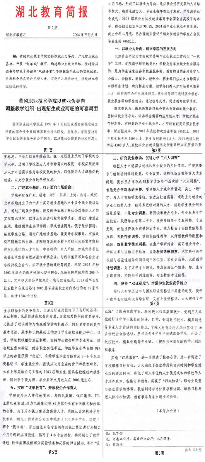 省教育厅推广我院订单教育和双证并重办学经验 来源:宣传部 作者:网络中心 发布时间:2015-12-27 09:01:43 浏览次数: 次 【字体:小 大】 湖北省教育厅《湖北教育简报》第二期,以“Beat365中文官方网站以就业为导向,调整教学组织,出现招生就业两旺的可喜局面”为题,向全省各高校推广我院坚持以就业为导向,广泛建立就业基地,开展“订单式”教育,构建毕业生就业网络,坚持学历证书与职业资格证书“双证并重”,不断提高毕业生的实践技能,培养社会急需的应用型人才的办学经验。 分享到: 【打印正文】