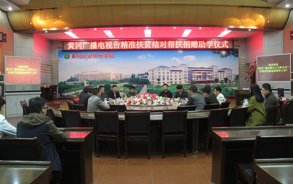 立冬送温暖,扶贫暖人心。11月7日,黄冈市广播电视台党委书记、台长王义阶,湖北省楚天视讯网络有限公司黄冈分公司总经理倪继贵等一行7人来Beat365进行结对帮扶,捐资助学。学校党委书记张新佳,党委委员、工会主席、党委宣传部部长郑柏松,党委委员胡燕,学生工作部部长熊楚舒、副部长陈胜红,医药学院院长张辛、学管负责人欧阳风雷,党委宣传部副部长刘国峰参加了捐赠仪式。仪式由郑柏松主持。