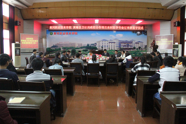 刘东山代表学校与黄梅县卫计局余仕荣签订订单班培养协议。医药学院张辛院长代表培养学员的教学学院介绍了学员在校学习生活的情况,对农村医学专业的人才培养方案进行了说明,鼓励大家要刻苦学习,认真钻研专业,做一名白衣战士。