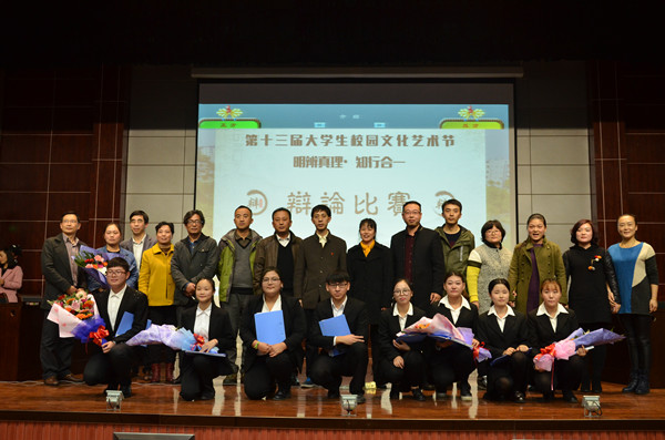 群雄舌战展雄风,争锋相对辩天下。11月15日晚,由校团委、学工处主办,机电学院团总支承办的第十三届大学生校园文化艺术节“明辨真理•知行合一”辩论比赛决赛在学术报告厅隆重举行。校党委委员、工会主席、党委宣传部部长郑柏松,学生工作部部长熊楚舒,团委书记李宁及各学院党总支副书记、团总支书记、辅导员和600多名学生代表观看了比赛。决赛评委由图书馆刘开国、科研处郭杏芳、宣传部余文澜、思政课部尹田生、学工处陈胜红老师担任。
