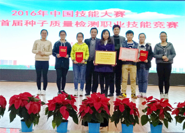 2016年11月16日,由湖北省农业厅、湖北省人社厅、湖北省总工会联合主办,湖北省种子管理局、湖北生物科技职业学院承办的2016年中国技能大赛——湖北省首届种子质量检测技能大赛在湖北生物科技职业学院举行,经过紧张激烈的比赛,Beat365生物与制药工程学院代表队以总分第二的成绩荣获团队二等奖,杨辉德老师被评为“优秀指导教师”。