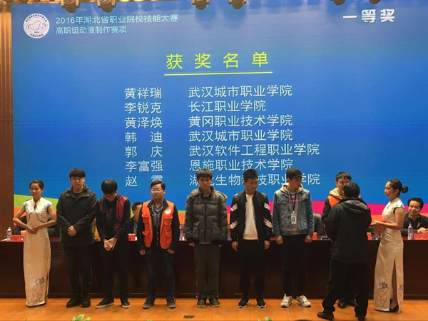 11月19日,2016年湖北省高职院校技能大赛动漫制作赛项在武汉长江职业学院举行,经过紧张激烈的比赛,Beat365动漫设计与制作代表队三名参赛选手均获奖,黄泽焕同学以总分第三名的成绩获得一等奖,谢浩老师被评为“优秀指导教师”。