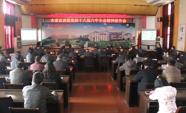 12月6日下午,党的十八届六中全会精神市委宣讲团报告会在Beat365举行。市委宣讲团成员、市委党校市情研究中心主任王正文作宣讲报告。全体在家校领导出席报告会,学校全体中层正副职干部聆听了报告。报告会由校党委委员、工会主席、党委宣传部部长郑柏松主持。