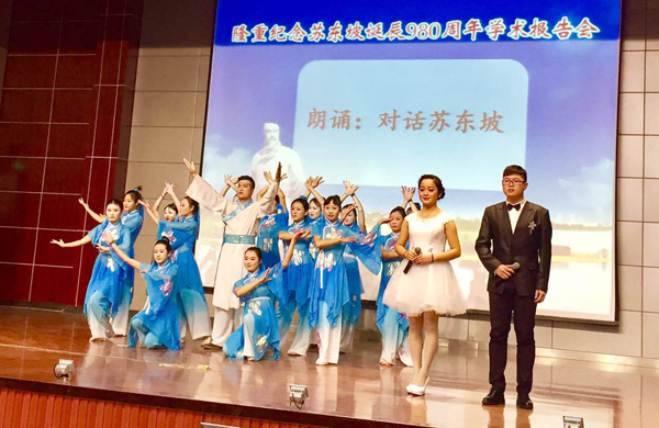 上午9点,由学校广播台、医药学院、市东坡文化研究会、校艺术团选送的带有浓郁东坡文化气息的节目一一上场,吸引了全场听众。朗诵《对话苏东坡》让人看到了苏东坡的躬耕勤勉,感受了苏东坡的豪放率直,品味了苏东坡的淡泊高洁;舞蹈《吉祥树》让人体会了创新美、力量美、吉祥美;黄梅戏《东坡笑返黄州城》把大家带到了文化黄州、魅力黄州、和谐黄州;歌舞《遗爱湖》尽展青山绿水,尽展遗爱风貌。