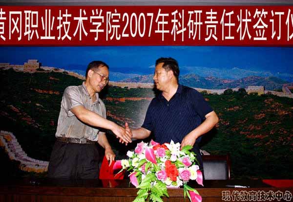 院长陈年友教授(右)与成教学院院长邓国璋(左)签订科研责任状