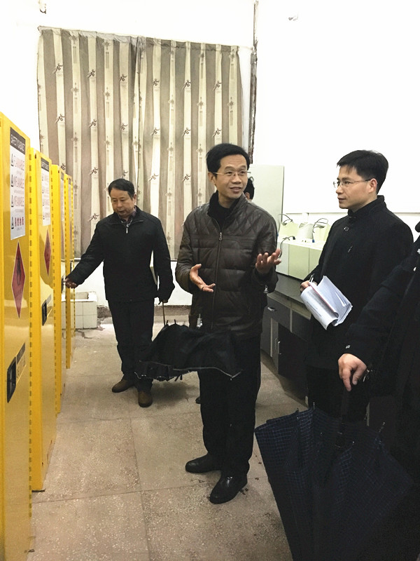 3月24日上午,党委委员夏学文带领由教务处、后勤服务与保障处、国有资产管理处和保卫处(综治办)等部门负责同志组成的检查组对全校的实验实训室进行了全面检查。