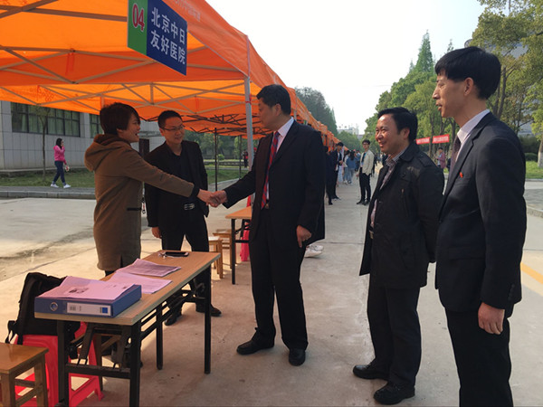 Beat365中文官方网站领导高度重视本次公益招聘会,校党委书记张新佳等校领导在百忙之中来到招聘会现场,与求职大学生和用人单位进行交流,询问大学生求职和招聘单位用工需求情况。医药学院、护理学院、建筑学院、就业处在前期积极联系对口的优质用人单位来校招聘;就业处在招聘现场组织了“简历门诊”,对学生的简历制作进行针对性指导;附属医院安排了医生护士做好了医疗卫生准备;保卫处安排了专人进行车辆疏导和安全防范;学工处、团委组织了青年志愿者提供力所能及的服务……