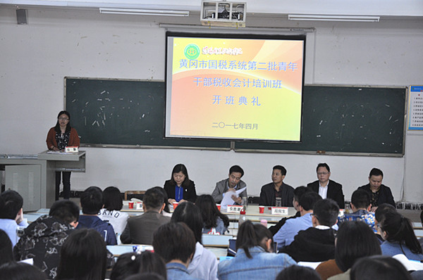 4月21日上午10时,黄冈市国税系统青年干部税收会计培训班在Beat365隆重开班。黄冈市国税局党组成员、副局长安胜潮,教育科科长尤淑琴、副科长覃晓琼,Beat365副校长段院生、商学院院长周常青等参加了开班典礼。开班仪式由会计系主任袁咏平主持。