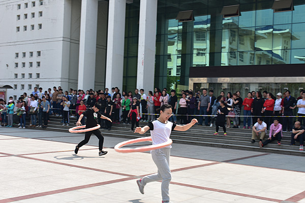 比赛现场处处欢声笑语,每个项目比赛处都聚集了大量选手和观赛师生。比赛中裁判员精神饱满,有序地组织项目的进行;参赛人员个个斗志昂扬,信心十足;助威呐喊声、加油喝彩声连同一串串欢乐的笑声席卷了整个赛场。