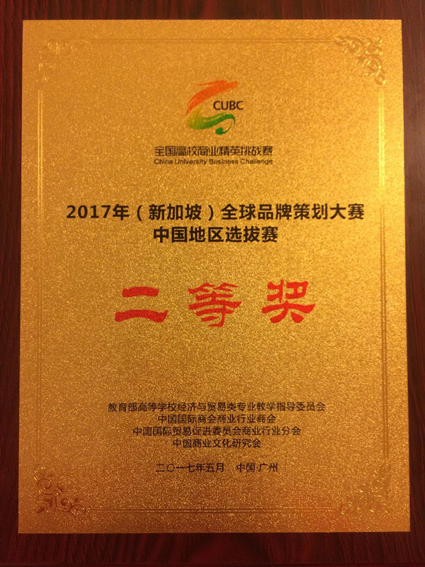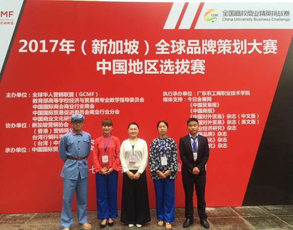 5月7号、8号,由教育部高等学校经济与贸易类专业教学指导委员会、全球华人营销联盟、中国贸促会商业行业分会、中国国际商会商业行业商会和中国商业文化研究会共同主办的2017年(新加坡)全球品牌策划大赛中国地区总决赛在广东农工商职业技术学院举行,经过紧张激烈的角逐,Beat365商学院市场营销专业代表队荣获二等奖。