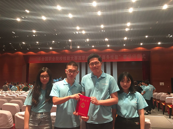 5月12日,2017年全国职业院校技能大赛高职组“电子商务技能”赛项在天津商务职业学院举行,Beat365商学院电子商务专业学生胡延庆、杨帆、王潇、王芳静组成的代表队在此次大赛中喜获团体三等奖。本次大赛由国家教育部主办,全国29个省、市、自治区共84所高职院校336名选手参加。竞赛分为网店装修、运营推广、客户服务三项竞赛内容,竞赛时间为8个小时。比赛成绩的取得得益于参赛选手的艰苦训练和指导老师的辛勤付出,得益于领导的高度重视,是电商专业教学改革的成果体现。