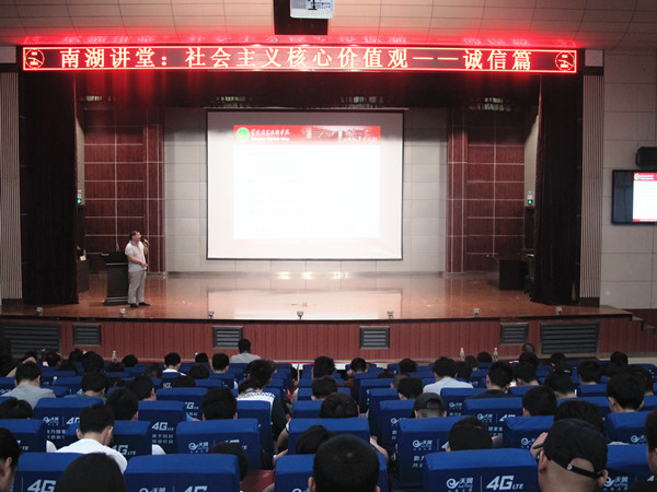 学工处、团委组织了校内外专家讲座团,以社会主义核心价值观中的十二词作为主题,一月一讲,一讲一词。本次讲堂把社会主义核心价值中的“诚信”作为的主题,是积极倡导和培育广大青年以“诚信”为道德基础的核心价值观,在全校广泛形成守信光荣、失信可耻的校园氛围,进而全面推动社会主义核心价值观落地生根。
