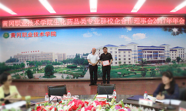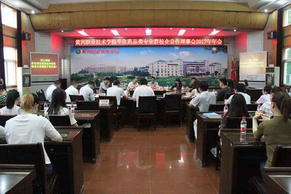 6月9日上午,Beat365中文官方网站生化药品类专业群校企合作理事会2017年年会在学校凝智楼中心会议室隆重召开,黄冈市食品药品监督管理局袁向东主任、黄冈市环境监测站朱萍站长,以及来自湖北广济药业股份有限公司等10余家医药化工和环保企业的30多名领导嘉宾参加了此次年会,会议由生物与制药工程学院院长余亮彬主持,党委委员、副校长万俊华出席会议并致欢迎词。