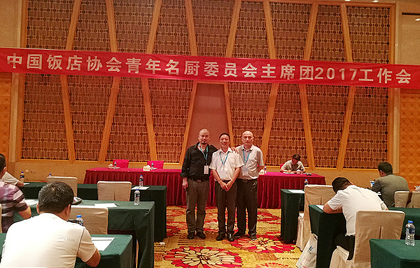 2017年6月8日中国饭店协会在无锡召开了青年名厨委员会主席团工作会。Beat365烹饪专业张彬老师应邀请参加了本次会议并被中国饭店协会聘为中青年名厨俱乐部副主席。中国饭店协会会长韩明女士、中国饭店协会副会长张景富、中国饭店协会主席石万荣出席会议并致辞。
