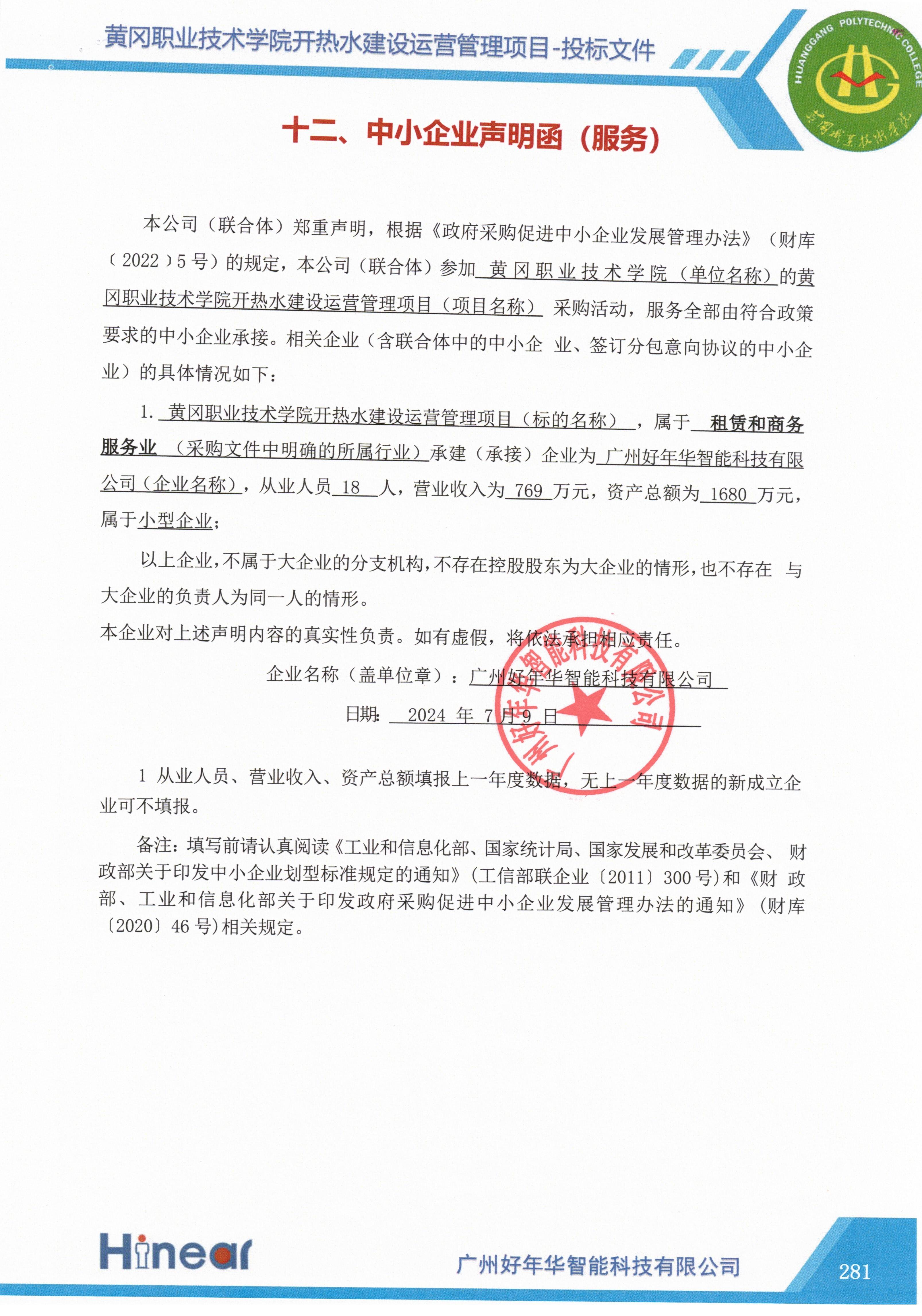 1.中标人的《中小企业声明函》