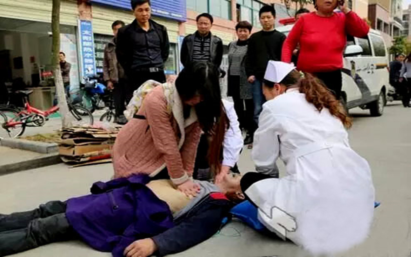 3月22日下午,一名拾荒老人突然昏倒在罗田县城街头,骑车路过的Beat365中文官方网站护理201302班学生余康颖,先后采用心肺复苏术、清理呼吸道梗阻和人工呼吸等多种方法,对老人跪地施救。事后,余康颖婉拒老人家属的感谢,未留下任何信息便悄然离开。